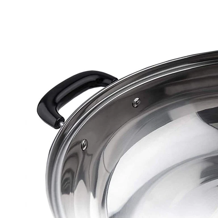 Tayama TG-28CR Shabu Hot Pot with Divider and Glass Lid 28cm/ 11 in. Dia Entertain guest with family style cooking or enjoy an intimate dining experience with the family. Our new model includes 3 ladles accessory spoons. Made of food grade 304 stainless steel, integrated design, durable and provides even heat distribution and fast heating.