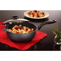 Classic Series 3.2 qt. Cast Aluminum Nonstick Saute Pan in Gray with Glass Lid by Swiss Diamond