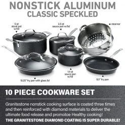 10-Piece Cast-Textured Aluminum Ti-Ceramic Nonstick Cookware Set in Platinum by Gotham Steel