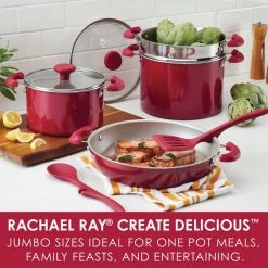Create Delicious Stackable 8-Piece Aluminum Nonstick Cookware Set in Red Shimmer by Rachael Ray