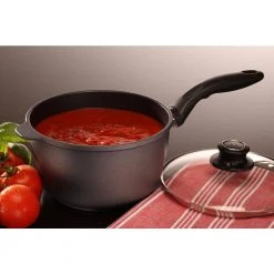 Classic Series 3.2 qt. Cast Aluminum Nonstick Sauce Pan in Gray with Glass Lid by Swiss Diamond
