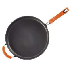 - Has a hard anodized surface that is durable/thick, heats evenly/quickly, and prevents hot spots