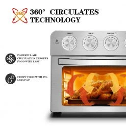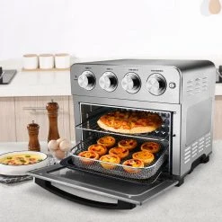 Family size and Space saving design – 24 qt., 3 rack levels allow you to prepare family-sized quantities for up to 10 people at once, or control how fast and crispy your food cooks. With a compact and sleek design this air fryer oven can be placed on your countertop or stored away when not in use. Healthy, Fast, Powerful – ETL listed for safety, 1700-Watt motor helps to efficiently cook food in the healthiest way possible by cutting over 85% of fats, while an included baking tray also acts as a drip tray to catch any excess oil. Versatile 7 Modes smart – Cake / Chicken / Fish / Pizza / Steak / Toast / Wings / Cookie / Defrost / Skewer / Vegetables / French Fries / keep Warm. The cyclone hot air circulation technology make your food evenly cooked to achieve a crisp and delicious flavor Toaster Oven. It also adjusts the taste of the food according to your personal taste. Expanding Cooking Options – Come with 4 extra accessories:1 Baking pan to bake the chicken or roast, 1 Airfryer Basket to Fried French fries, 1 Oven Rack to Bake chicken wings and toast or dried fruit, 1 drip tray that catches fat and oil, this air fryer can create more possibilities which means you’re able to cook more types delicious with the recipe. Best Customer Service Geek Chef provides 30 days money-back guarantee, 1 year warranty and a lifetime technical consultation. Geek customer service ready to serve you within 24 hours.