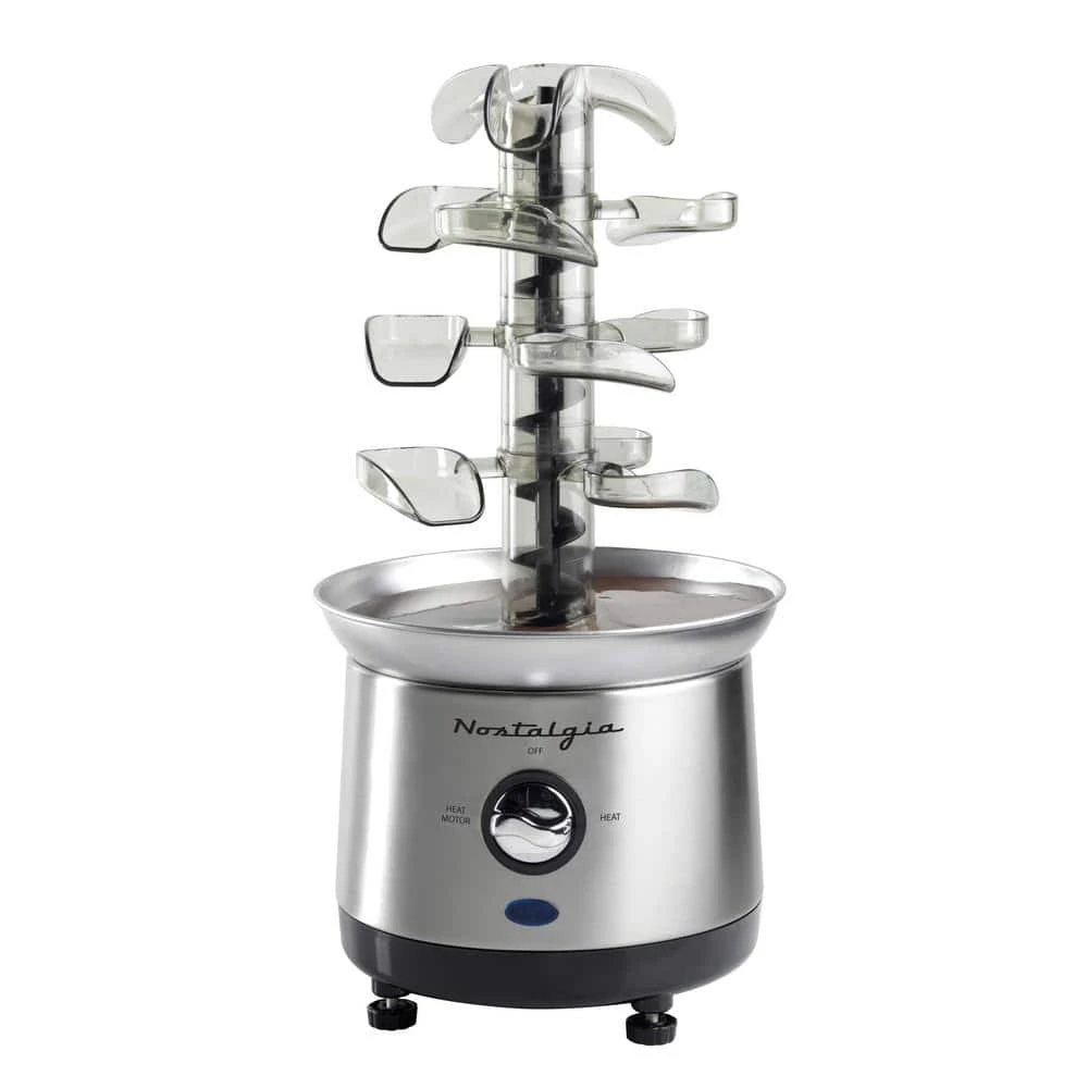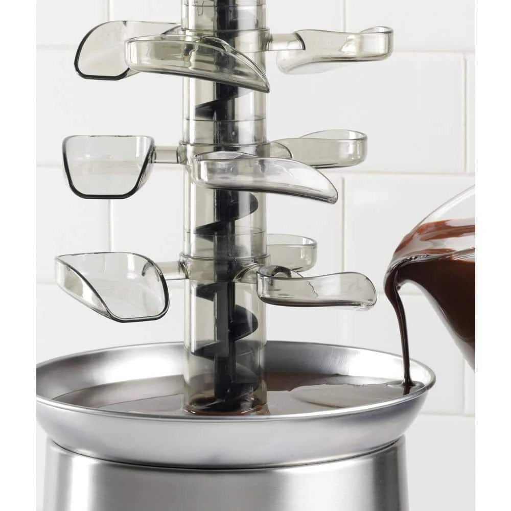 - Fondue fun: 4-tier chocolate fountain has a 32-oz. capacity, making this a party favorite. enjoy with strawberries, apple wedges, cherries, marshmallows, popcorn, pretzels, wings, vegetables, and more
