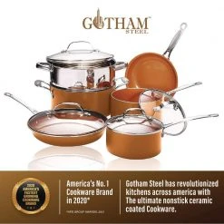 Gotham Steel cookware was designed with a Ti-Cerama coating that combines super strong titanium fused with super slick ceramic for the perfect balance of nonstick and durability. It is PTFE and PFOA free which means nothing will stick. Cook without butter or oil. Gotham Steel will change the way you cook and clean. The Ti-Ceramic coating allow for easy clean up and dishwasher safe.