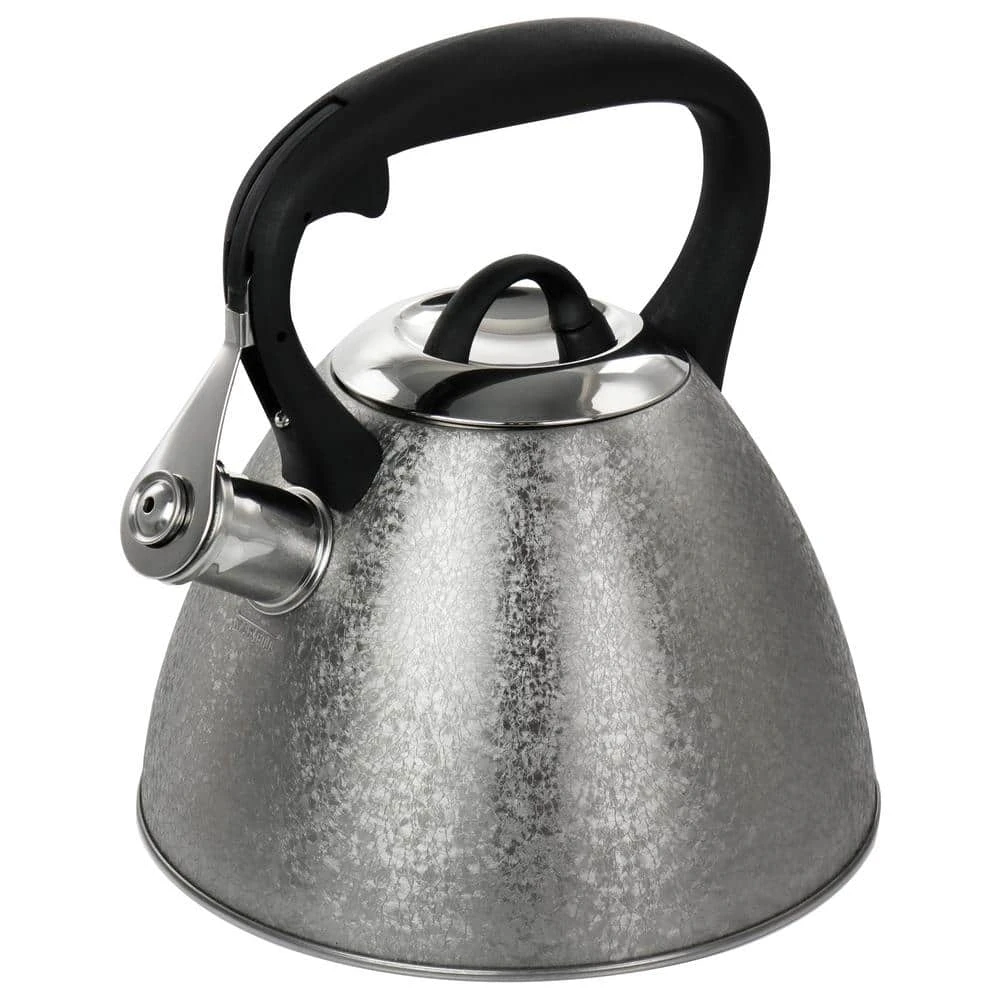 Enjoy the sweet aroma and taste of your favorite tea blend with the Mr. Coffee 2.5 qt. Stainless Steel Whistling Tea Kettle. The integrated whistle signals when the water is boiling. Essential for perfectly prepared pour-over coffee, this precise-pouring stainless steel kettle is designed with a flip-up spout for exceptional control and easy one-handed operation. This tea kettle is the perfect addition for any kitchen made of durable stainless steel.