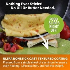 - ULTRA NONSTICK – the nonstick cooking surface is coated three times and reinforced with diamonds to deliver the ultimate food release. No oil or butter needed makes for healthier eating, and provides for hassle free, 1-2-3 cleanup.