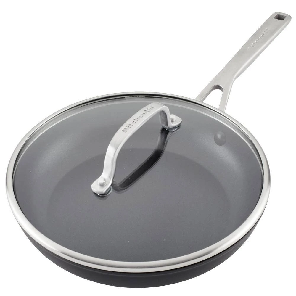 - Premium food release: KitchenAid hard anodized fry pan is finished with triple layer, PFOA-free nonstick to stand up to daily wear and tear