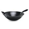 The Cooks Standard 11 in. Hard Anodized Nonstick Wok Stir Fry Pan Flat Bottom With Lid, Black, 28cm has a hard anodized surface that is durable, heats evenly/quickly, and prevents hot spots. Material is harder than steel, thick, and chip-resistant. Nonstick performance for easy food release/tossing, cleaning, and allows for healthy cooking. Tempered glass lid with steam vent is protected by a stainless steel rim to view food. Long riveted stainless steel handle stays cool/comfortable and is strong. Wide and deep to hold a large amount of food for multipurpose use: stir frying, sauteing, frying, and more. Not induction compatible. Works on gas, electric, glass, ceramic, halogen, etc. Oven safe to 450F, glass lid to 350F. Dishwasher safe, hand wash recommended.
