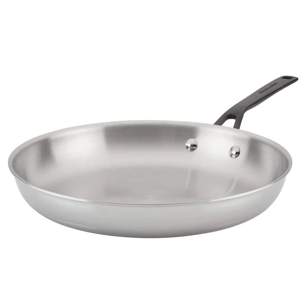 - Lasting construction: fry pan is crafted from heavy-duty 5-ply clad stainless steel and features a unique brushed base to hide wear and tear for long-lasting durability