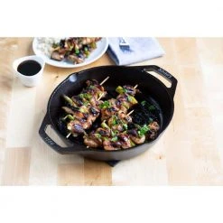 Add grill marks to your favorite foods while the pan’s ribbed bottom keeps grease off your dish for healthy cooking. The dual handles provide great lift and control. Made for decades of cooking.