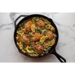 Seasoned 12 in. Cast Iron skillet with assist handle. The Lodge 12 in. skillet will be your go to skillet for years to come. The right tool to sear, saute, bake, broil, braise, fry or grill. The Lodge 12 inch skillet features an assist handle for easier handling. The Lodge seasoned cast iron cover (L10SC3) and tempered glass cover (GL12) fit this skillet. What makes this a classic American skillet? For 125 years, it’s been a staple in kitchens around the world. Crafted in America with iron and oil, its naturally seasoned cooking surface is ready to help you turn your meals into delicious, shareable moments. Cast to last! Seasoned and ready to use.