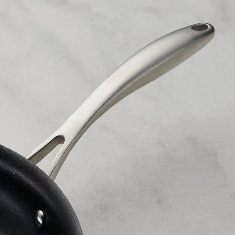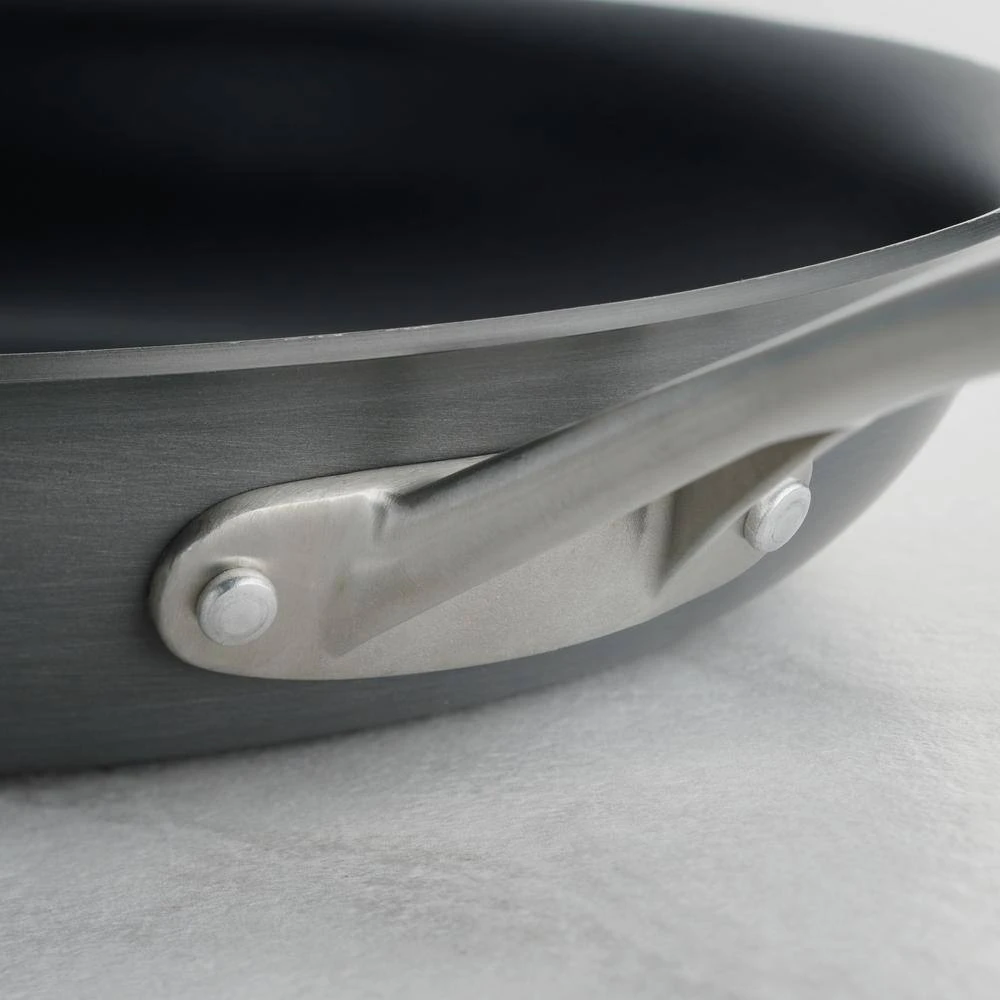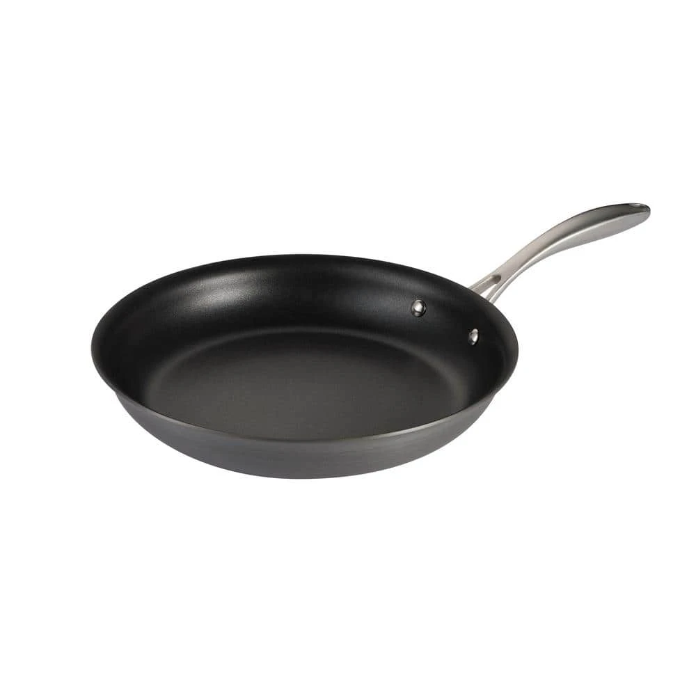 From searing steaks to making pan pizzas, the Tramontina 12 in. Hard Anodized Aluminum Fry Pan is perfect for making a scrumptious, hot meal for the whole family. Its heavy-gauge aluminum construction allows for a reliable uniformity across the pan, while the flared edges help reduce spills and splatters. With a durable hard anodized exterior finish and a reinforced nonstick interior coating made without PFOA, this fry pan is sure to last you years and make clean up a breeze. Its stainless steel handle also comes with a satin finish, making it a sleek and modern addition to your kitchen. The Tramontina 12 in. Hard Anodized Aluminum Saute Pan is-compatible with gas, electric and ceramic glass cooktops, is oven-safe up to 350°F / 176°C, and-includes a lifetime warranty.