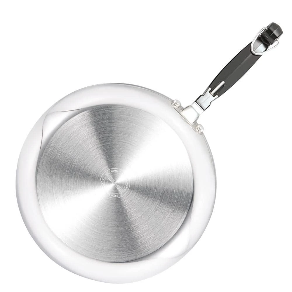 - Thick aluminum cookware bases are encapsulated by durable stainless steel for fast, balanced heating and cooking on all stovetops, including induction