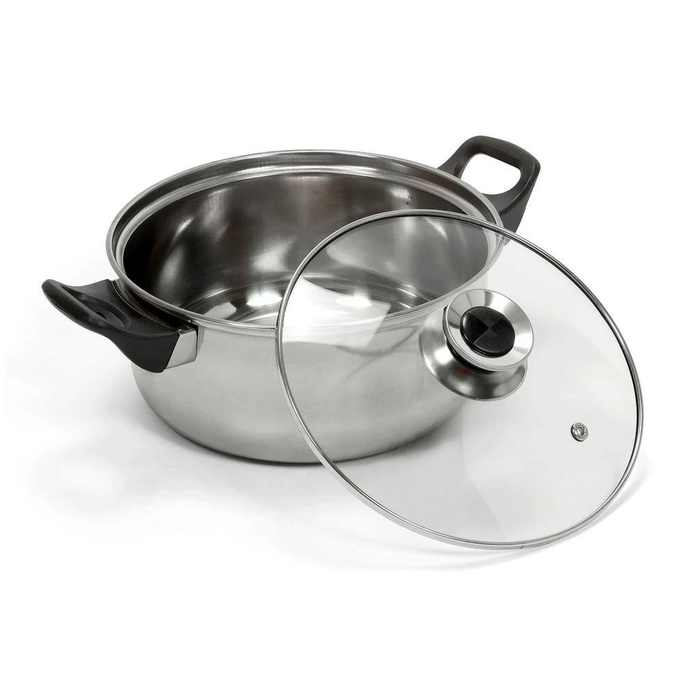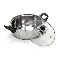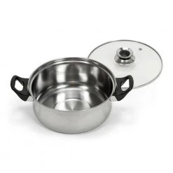 - Tempered glass lids with steam vent to view food; Riveted stainless steel handles are durable, comfortable, and wide/deep for grip