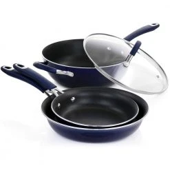 - Set includes: 5.5 q.t Dutch oven with lid, 3.5 qt. saute pan with lid, 2.5 qt. saucepan with lid, 1 qt. saucepan with lid, 10 in. frying pan, 8 in. frying pan, carbon steel baking sheet, cutting board, slotted turner, spoon