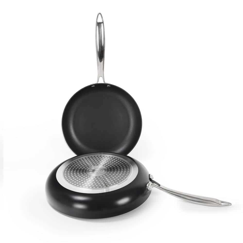 - Includes 9.5″ and 11″ High temperature frying pans