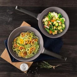 - 2-piece fry pan set – the Gastro 2-piece fry pan set from MasterPRO features two essential sizes for any kitchen collection: a 9.5 in. fry pan and an 11 in. fry pan, whether you’re quickly frying eggs in the morning or searing and sauteing for dinner, the Gastro 2-piece fry pan set from MasterPRO provides exactly what you need