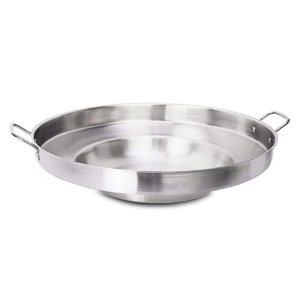 The Stark 23 in. Frying Pan brings its signature style outside for grilling everything from tender summer vegetables to delicate seafood. It’s crafted of brushed stainless steel with large perforations to circulate heat and add delicious smoky flavor. This frying pan is ideal for all cooking purpose including fried fish, BBQ, Carnitas, Baracoa and more. It is made from stainless steel for high durability. It features flat surface for outside using with portable gas stove.