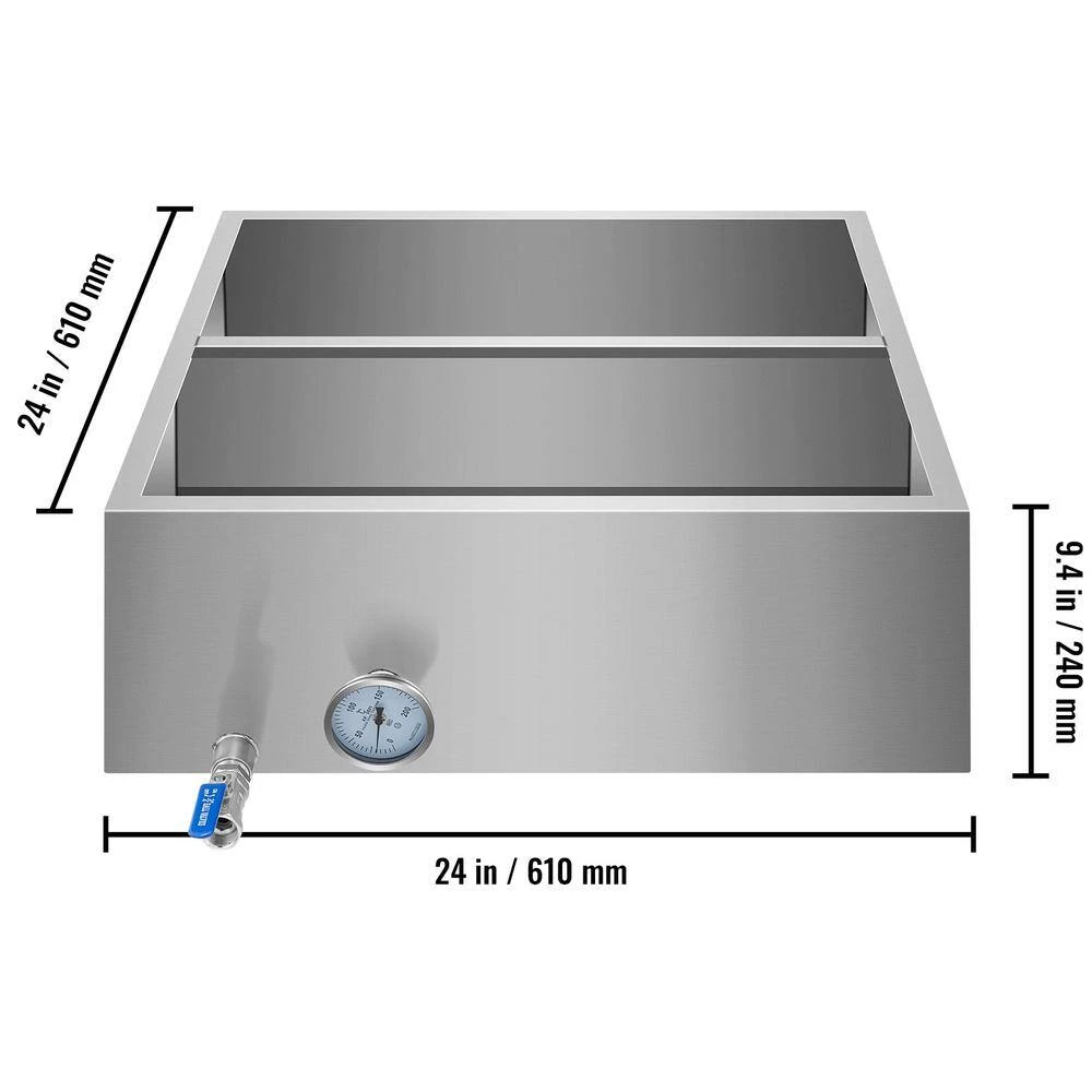 - Specifications:Material: 304 Stainless Steel,Valve Size: 3/4 in.,Thermometer: 32-392℉,Product Dimensions: 24 x 24 x 9.4 in.,Product Weight: 32 lb.