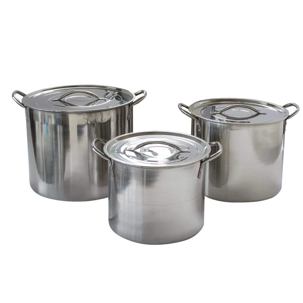 - Set includes 3-different size pots – one 8 qt., one 12 qt., and one 16 qt.