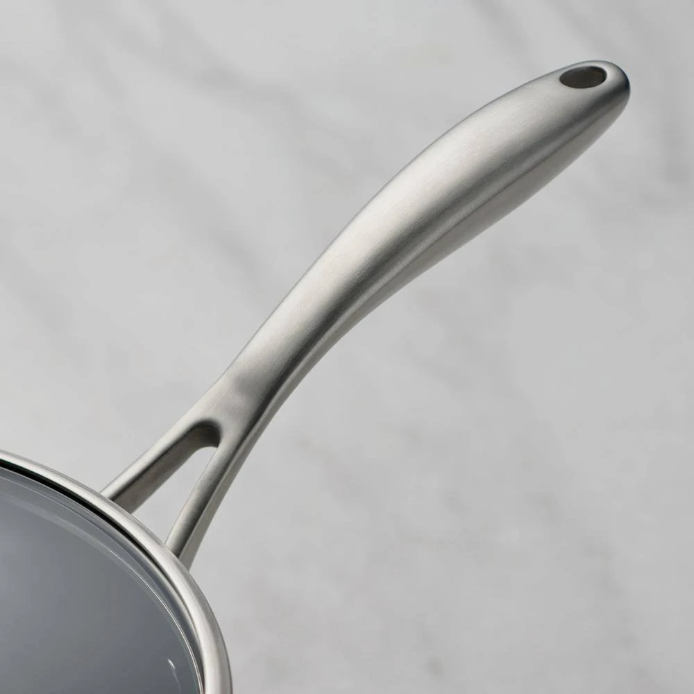 Whether you prefer a classic chicken noodle soup or a stick-to-your-ribs clam chowder, the Tramontina 3 Qt. Hard Anodized Aluminum Covered Sauce Pan will become your go-to for making small amounts of sauces, soups, and stews. Its heavy-gauge aluminum construction allows for a reliable uniformity across the pan, while the heat and shatter resistant glass lid helps reduce spills and keep in the heat. With a durable hard anodized exterior finish and a reinforced nonstick interior coating made without PFOA, this sauce pan is sure to last you years and make clean up a breeze. Its stainless steel handles also come with a satin finish, making it a sleek and modern addition to your kitchen. The Tramontina 3 Qt. Hard Anodized Aluminum Covered Sauce Pan is-compatible with gas, electric and ceramic glass cooktops, is oven-safe up to 350°F / 176°C, and-includes a lifetime warranty.