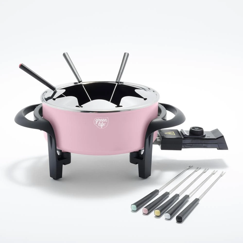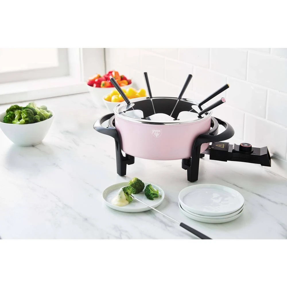 Fondue it together. The Fondue Party makes it easy for people to get together and celebrate flavor. Everyone can gather to dunk a savory meat or a sweet dessert and create a delicious taste to define the night. The 3 qt. capacity means you have plenty of food for everyone. Fondue Party features our signature healthy ceramic nonstick coating to makes cleaning up after the party effortless. With low, medium, and high settings, it’s easy to find the right flavor for your meal. The 8-color coded tips on each fork make it simple for your guests to have their own.