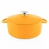 Introducing our new and improved Cast-Iron Dutch Oven. NO SEASONING NEEDED. Our factory has produced high quality cast-iron cookware for over 40-years. Chantal’s Enameled Cast Iron Collection is produced using the most advanced techniques available. Sand-Cast molds skillfully form each piece ensuring consistent thickness and shape. The result is a perfectly molded piece of cast iron with exceptional heat retention. Top-grade enamel is applied to the interior and exterior of each piece. Enamel provides depth of color and is the healthiest cooking surface possible. Enamel is essentially a glass coating that will not leach metals into food and will not react with or alter flavors in your dish. The heavy cast lid keeps steam and condensation inside thus keeping all the flavor and nutrients in your food. Enameled cast iron will cook similarly to traditional cast iron but it will not have to be seasoned before use and cleanup has never been easier. This 3 qt. Dutch Oven is perfect for slow cooking meats, sauces, or try one of our recipes: Southwest Corn Chowder or Classic Irish Stew. This size will serve a family of 4 and you’ll still have leftovers for the next day.