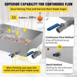 - Efficient Processing Flow: Handle nearly 11 gal. of sap in total, meaning 169 bottles of 0.07 gal. maple syrup can be made. The maple syrup pan comes with a 3/4 in. valve to adjust the flow rate and load the maple syrup into other containers