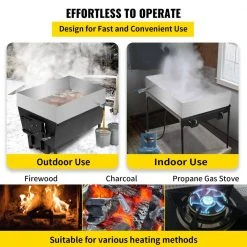 - Outdoor & Indoor Use: This syrup pan is suitable for outdoor or indoor use, and supports many heating fuels: firewood, charcoal, propane gas stove, etc. It can be used according to your cooking preferences, very convenient, and there is no need to buy additional accessories