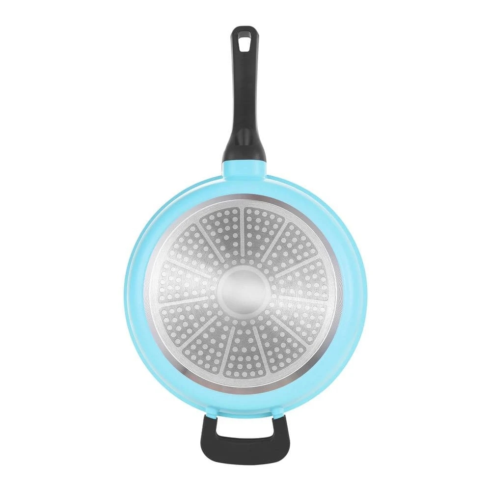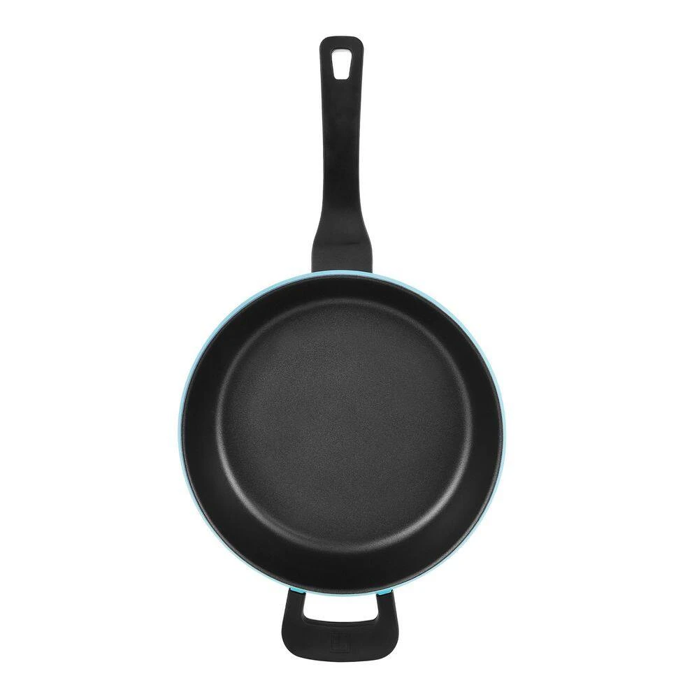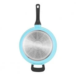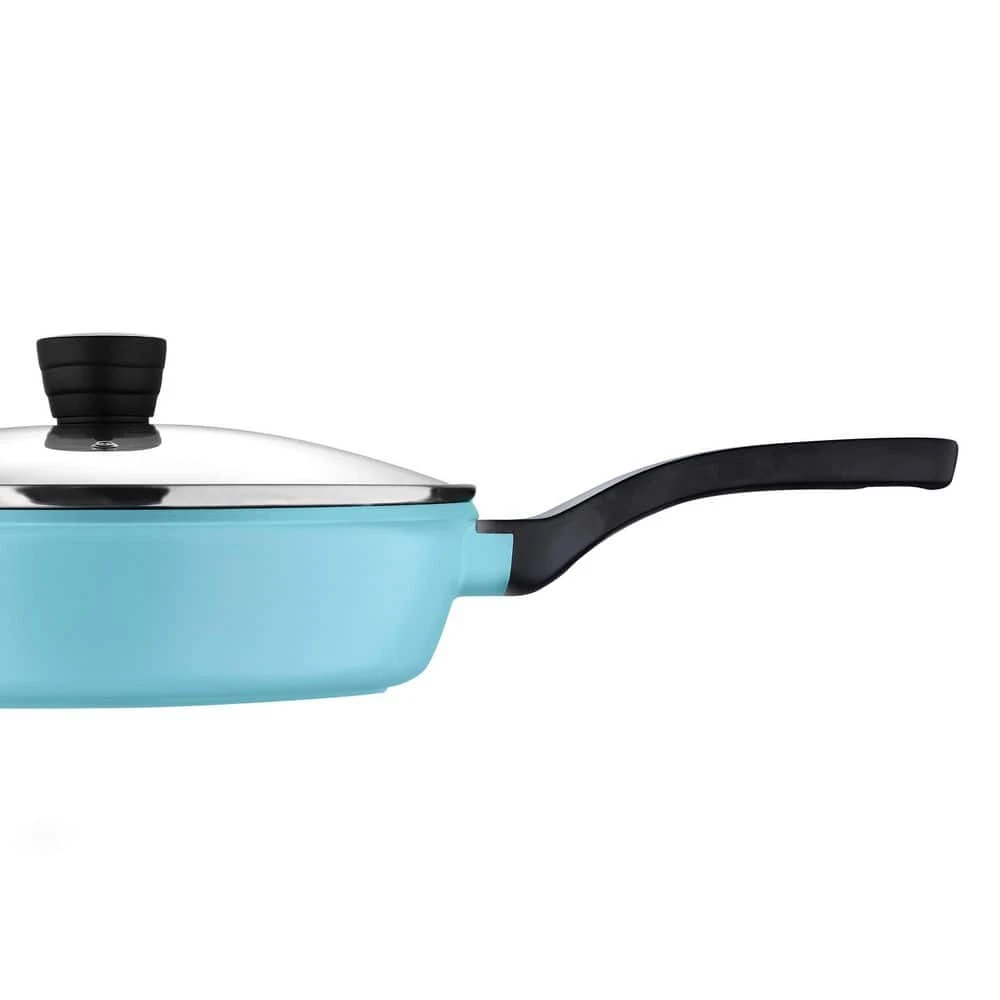 This Saute Pan from the Bergner Retro collection locks in heat and moisture, making it the perfect companion for saucy dishes, chili, or any dish that requires a longer cooking process. The high sides make this saute pan your go-to pan when deep frying or sauteing. The pan that can do it all, take the saute pan from the stove to the oven to your table.