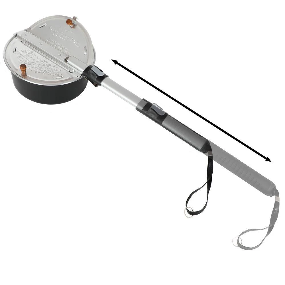With the Open Fire Outdoor Popcorn Popper you can easily make hot, crunchy, mouth-watering popcorn in minutes. Use the old-time “shake and pop” method over your campfire, fireplace, backyard or camping grill. Safe and Easy to use with 2 foot telescoping detachable handle to keep user a safe distance from fire, yet stores away compact.