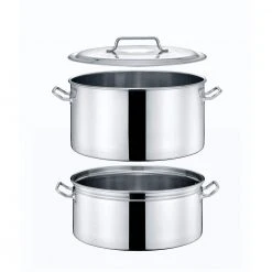 Concord Stainless Steel 40 qt. Steamer and Braiser Stock Pot Combo. Can be used as a steamer pot, perfect for oysters, crab, lobsters, vegetables and more. Bottom tier can be used as a stand alone braiser and stock pot. A heavy duty stainless steel removable divider is provided for separating ingredients for steaming. This way can you easily remove ingredients that cooks faster. Available in 4 extra large sizes: 24 qt., 40 qt., 60 qt., 100 qt.