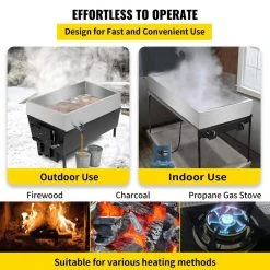 - Outdoor & Indoor Use: This syrup pan is suitable for outdoor or indoor use, and supports many heating fuels: firewood, charcoal, propane gas stove, etc. It can be used according to your cooking preferences, very convenient, and there is no need to buy additional accessories