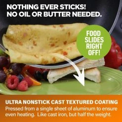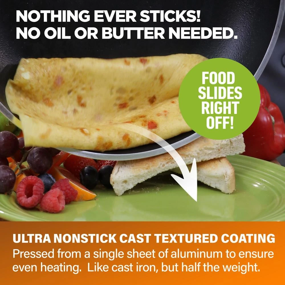 - ULTRA NONSTICK – the nonstick cooking surface is coated three times and reinforced with diamonds to deliver the ultimate food release. No oil or butter needed makes for healthier eating, and provides for hassle free, 1-2-3 cleanup.