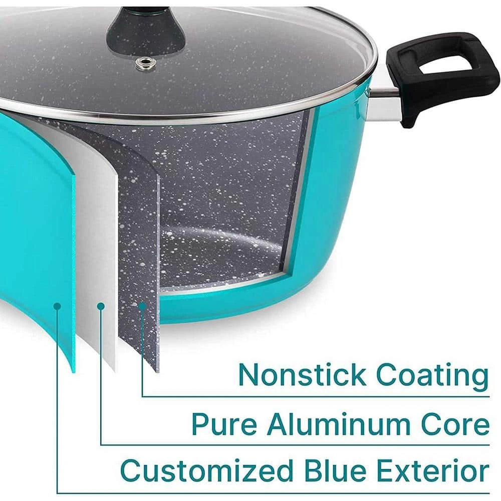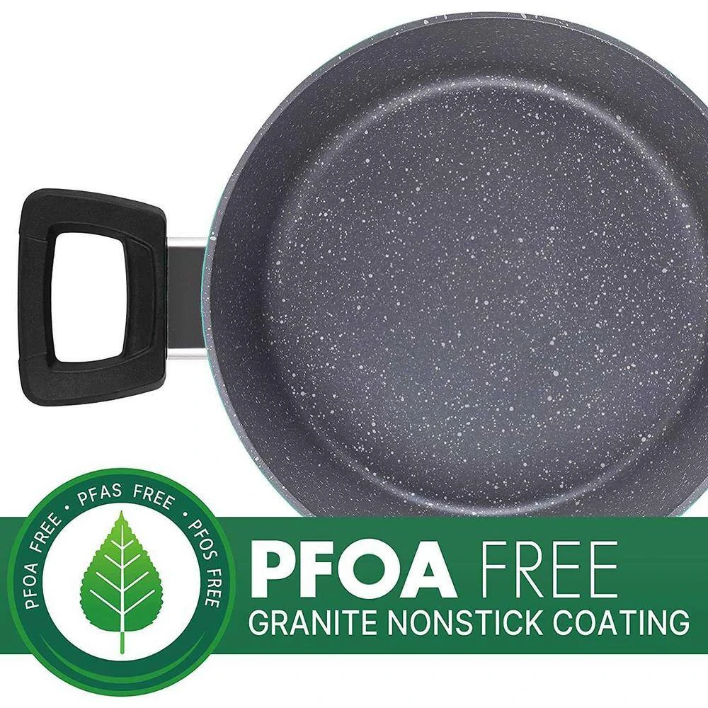 EPPMO Granite Aluminum Nonstick Sauce Pans and Stock Pots have a Tri-Ply construction with a Ultra Non-Stick Granite inner coating that makes it anti-abrasion, scratch resistant and never warps. Perfect for the go-to cookware choice for both the experienced home cook and novice gourmet. Bring you a healthier and pleasure meal.