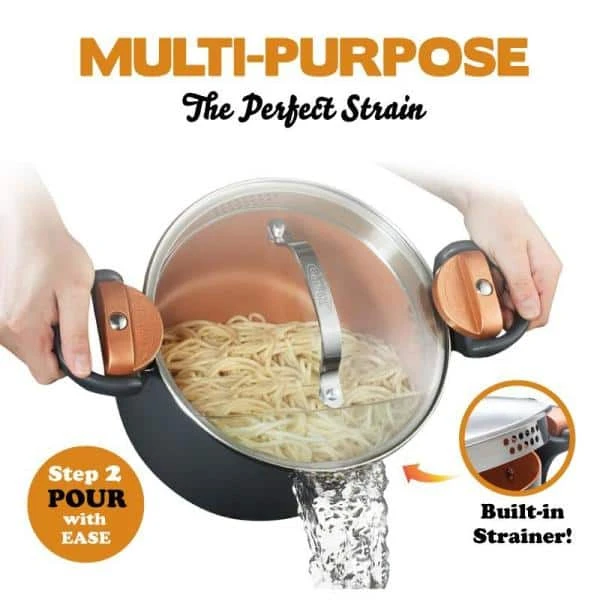- MULTIPURPOSE POT – great for pasta, spaghettis and anything else that cooks on the stove! Use the strainer or not, this pot is designed for all types of foods and is oven safe