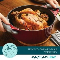 - VERSATILE DUTCH OVEN: Braise, sear, simmer, slow-cook and more with a traditional enamel cast iron Dutch oven from Rachael Ray — you can even bake breads with it