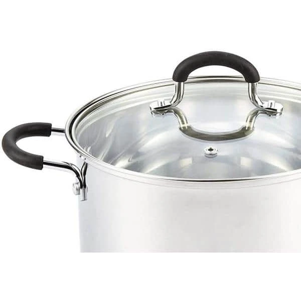 The Cook N Home 5- qt. Stainless Steel Casserole Stockpot with Lid is made of mirror polished 18/10 stainless steel with an aluminum disc bottom between steel layers. The aluminum disc capsuled bottom provides even/quick heat distribution and prevents hot spots. Reflective finish inside and out for appearance and easy cleaning.-flat base and lightweight for storage and sits evenly on cooktops. Tempered glass lid with steam vent makes viewing food easy and provides an inside seal. Riveted stainless steel handles are durable, comfortable, and wide/deep for grip. Handles stay cool and have a hole for hanging. Multipurpose and holds temperature for boiling, frying, steaming, and more. Induction compatible. Works on: gas, electric, glass, ceramic, halogen, etc. Oven safe to 500F, glass lids to 350F. Dishwasher safe.