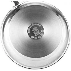 - Made of mirror polished 18/10 stainless steel with an aluminum disc bottom between steel layers for even/quick heat distribution