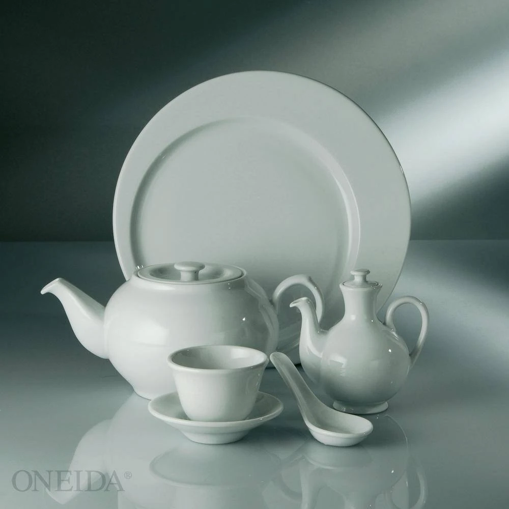 The Oneida Fusion line is perfect for a variety of high-end dining rooms in fine dining restaurants and can also be used in more casual banquet halls for extra versatility. Made of fine porcelain, this dinnerware is fully vitrified for added durability and stain-resistance. The bright white color is also great to match with subtle cream or pastel colored table linens to create a cohesive, fine dining experience.