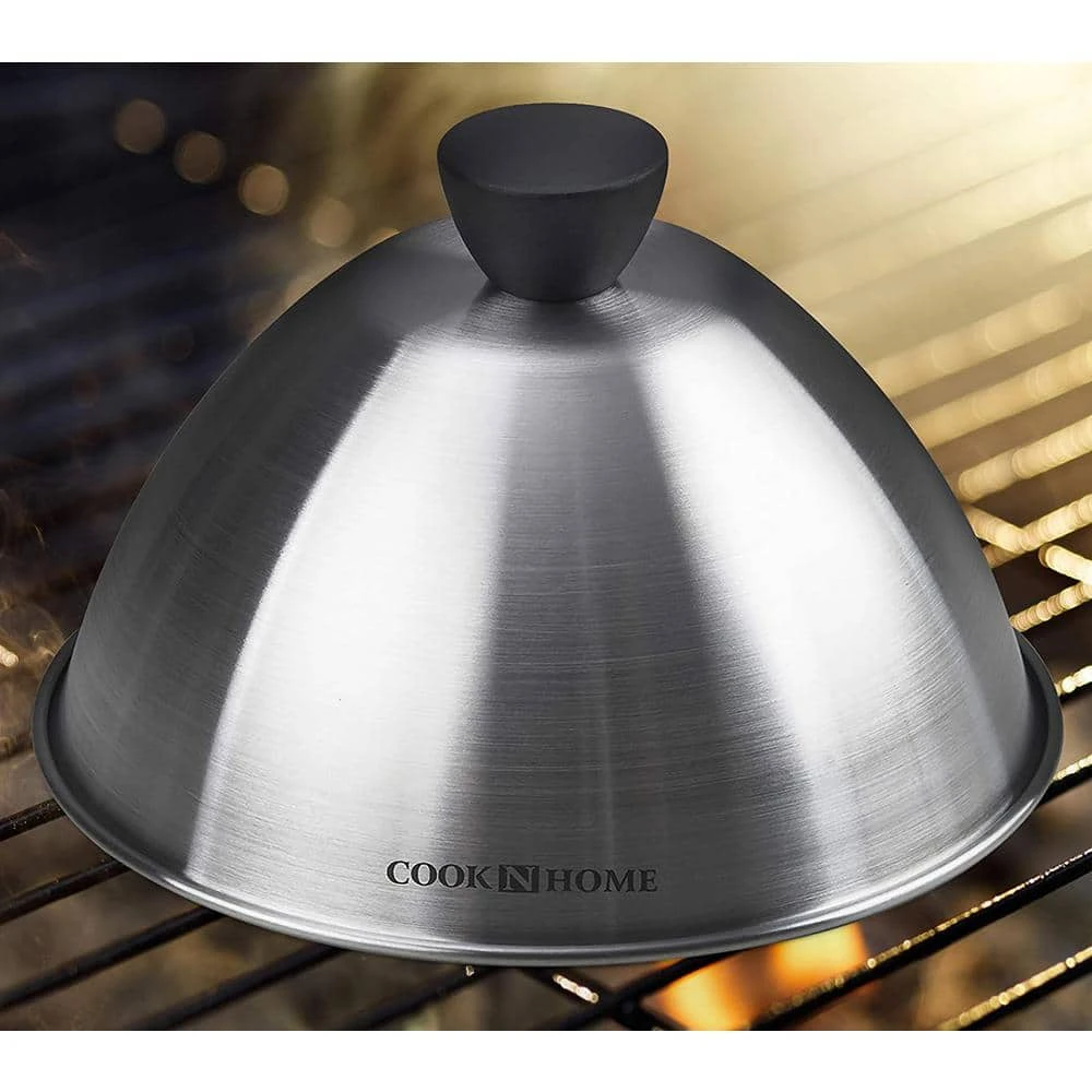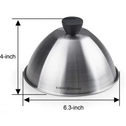 The Cook N Home Stainless Steel Grill Cooking Steaming Dome lid 6-in., 2Pack is made of 18/10 stainless steel with a plastic handle. Fits 6 in. pans, pots, and surfaces for steaming and keeping in moisture. Indoor and outdoor use for retaining heat, reducing splatters, and covering. Reinforced lip creates a tight seal to infuse flavor into food, shortens cooking time. Cook burgers/patties faster, retains the juices, and allows for melting cheese on top. Can be used on grills/griddles, barbecues, Japanese Teppanyaki, etc. dishwasher safe.
