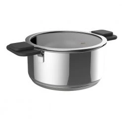 - Uniquely fitted lids made of tempered glass, each with a steam-release vent and 2 heat-resistant silicone-coated handles