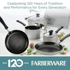 “Equip the kitchen for convenience and reliability to make family-sized one-pot meals with the Farberware Cookstart 6-Quart Nonstick Jumbo Cooker. Crafted from heavy-duty aluminum for excellent heat distribution, this big jumbo cooker is ideal for making a zesty seafood paella or a delicious cheddar mac-n-cheese and boasts a superior DiamondMax(tm) nonstick interior that performs 3X better than ceramic nonstick for easy food release and cleanup with a distinctive look. Oven safe to 350°F with comfortable handles for a confident grip, this jumbo chef pan has a shatter-resistant glass lid to seal in heat and moisture and a colorful exterior that looks great in any kitchen. Plus, it’s dishwasher safe for quick, convenient cleanup. Be ready to create big and delicious one-pan meals every day with the convenient, easy cleaning Farberware Cookstart 6-Quart Nonstick Jumbo Cooker with DiamondMax(tm) Nonstick.”