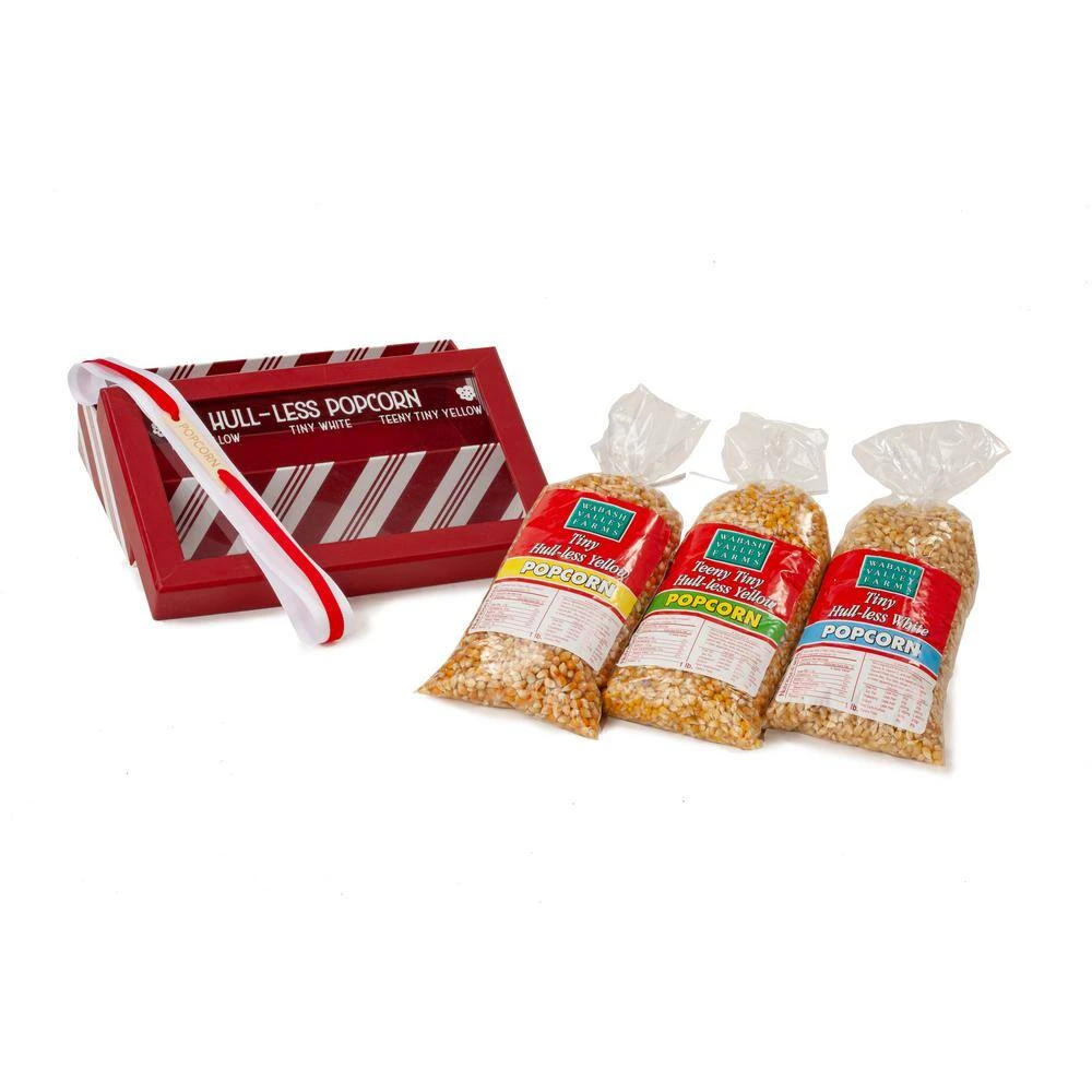 - Hull-less Popcorn Striped Gift box – a holiday-themed box with a viewing window so you can enjoy the pretty kernels inside.