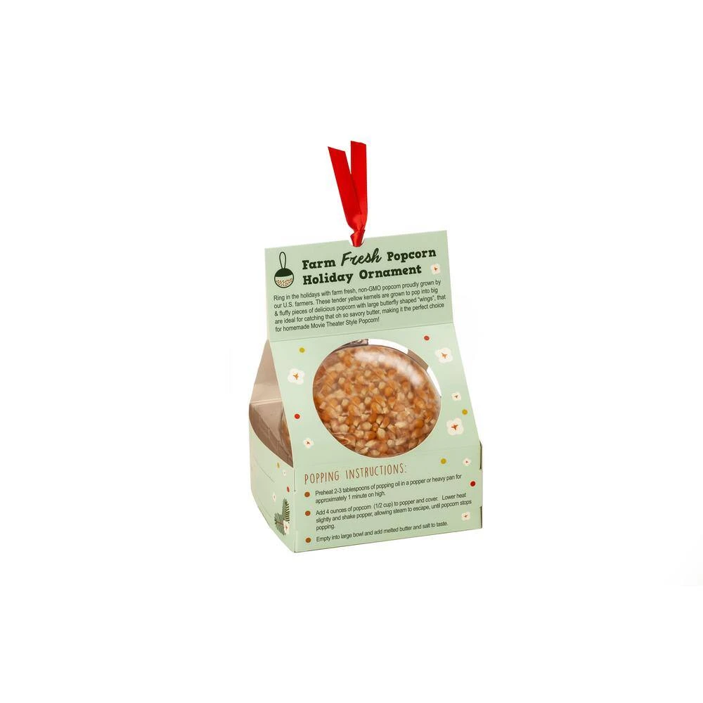 - Poppin’ by to Wish You a Happy Holiday Ornament. Featuring a clear ornament full of 14oz of Gourmet Big and Yellow Popcorn Kernels. A graphic wreath circles the popcorn and features a bright red bow with jingle bell, perfect for holiday gifting.