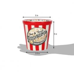 - Hot and Fresh Popcorn Red and White Striped Ceramic Bowl. Holds 4 cups of popcorn.