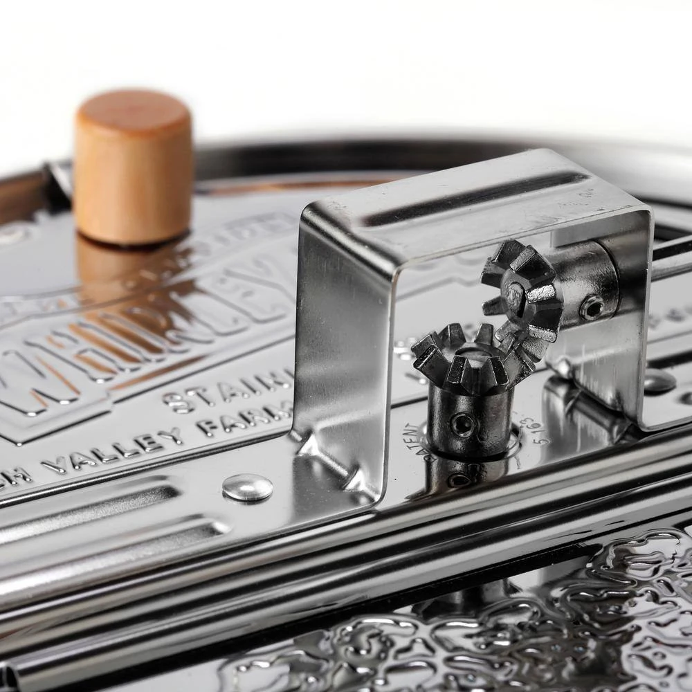 - Stainless steel Whirley-Pop, pan and lid are made out of high-quality stainless steel with metal gears and hardwood handle and knobs