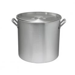 - 64 qt. stockpot with premium quality aluminum body and vented lid