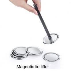 - Set includes: tongs (vinyl coated), Jar lifter (vinyl coated), jar wrench (vinyl coated), funnel, magnetic lid lifter, mixer/ measurer, and a stainless steel 12.25 in. rack
